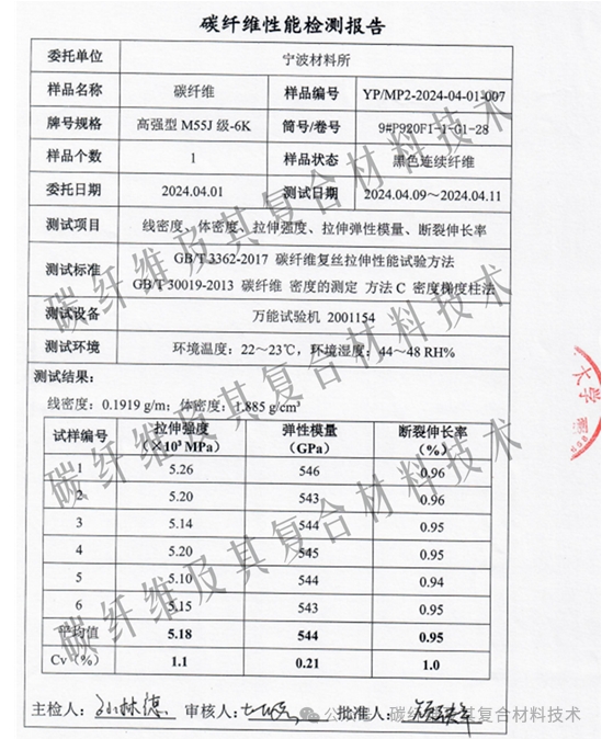近日,中國科學院寧波材料所碳纖維及其復合材料團隊(以下簡稱“寧波材料所碳纖維團隊”)在高性能碳纖維領域取得新進展,開創(chuàng)性研發(fā)的M55X型高強高模高延伸碳纖維的力學性能實現(xiàn)進一步優(yōu)化提升,經(jīng)過國內(nèi)專業(yè)機構檢測,該型碳纖維拉伸強度達到5.18 GPa、拉伸模量544GPa、斷裂伸長率0.95%。與今年1月,日本東麗最新研發(fā)出的M46X型碳纖維(拉伸強度5.0GPa、拉伸模量437GPa)相比,力學性能上具有一定的先進性。